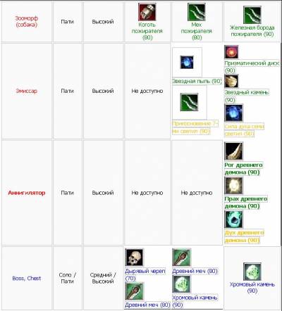 | Форум Об игре Гайды Таблица "Что и где падает в ХХ" |
